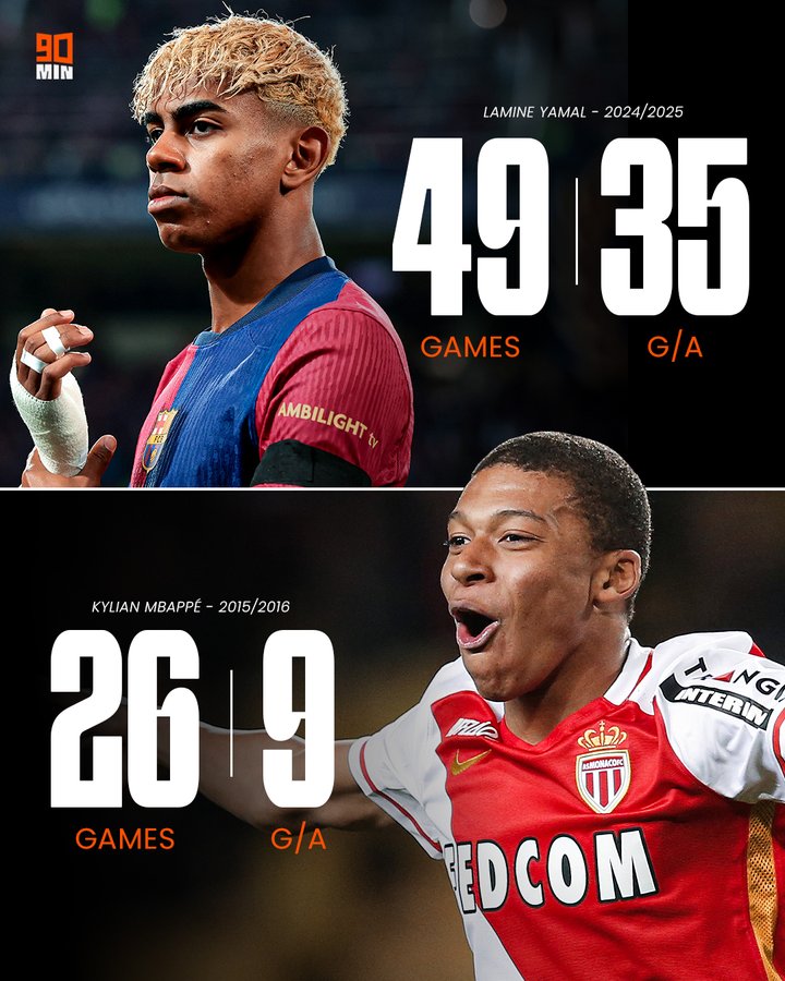 17岁同龄赛季,亚马尔PK姆巴佩: