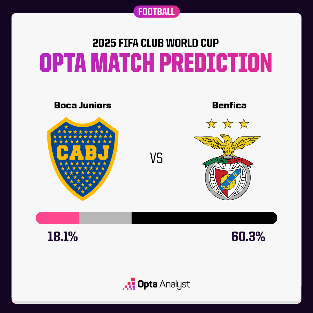 依旧是一场强弱明显而悬念不大的赛事--博卡青年胜,18.1%;本菲卡胜,60.3%;双方平局,21.6%。