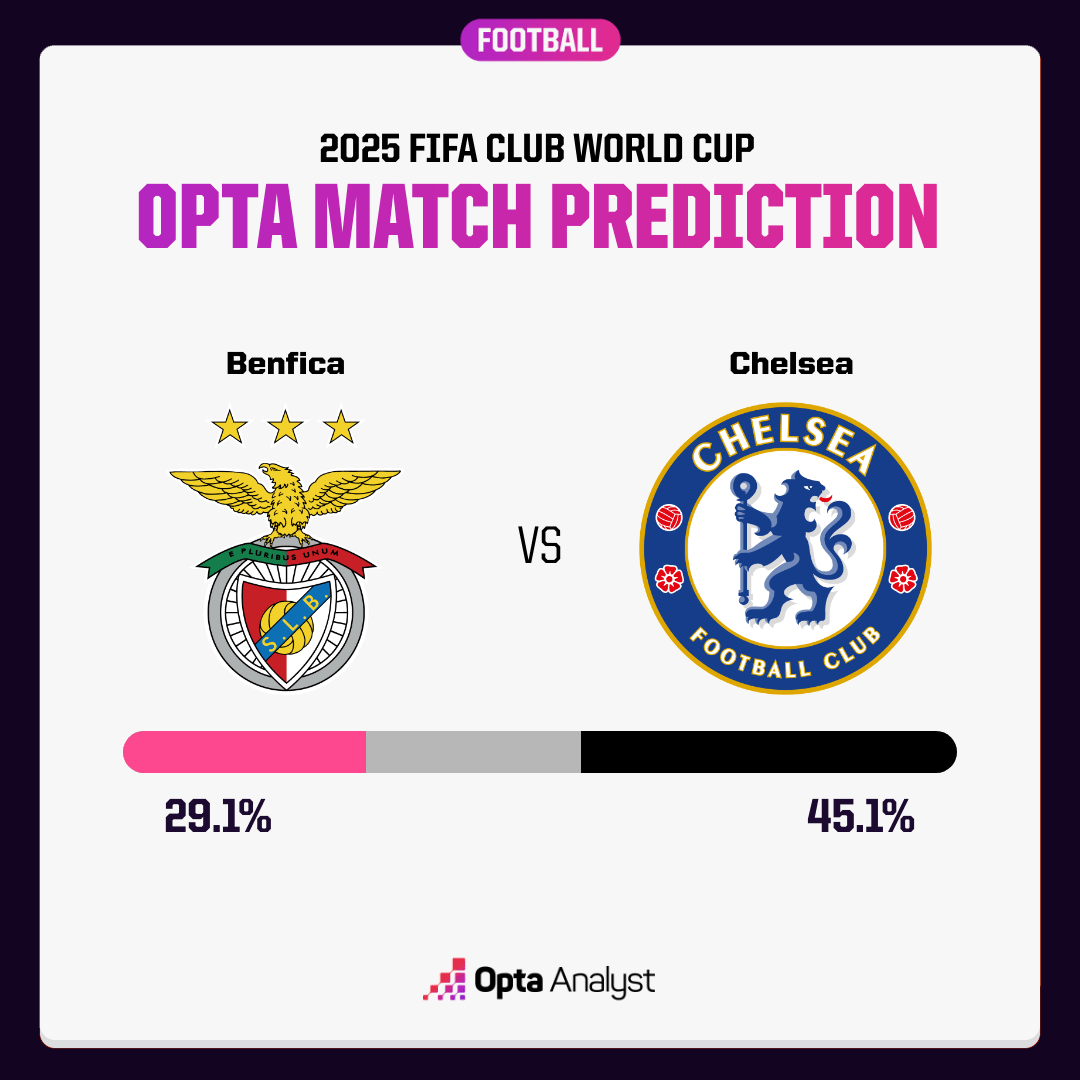 北京时间6月29日00:00开始,2025世俱杯也将正式进入到淘汰赛的节奏当中。而按照惯例,Opta也在赛前发布了率先开打的两场1/8决赛的胜平负预测来为比赛预热。