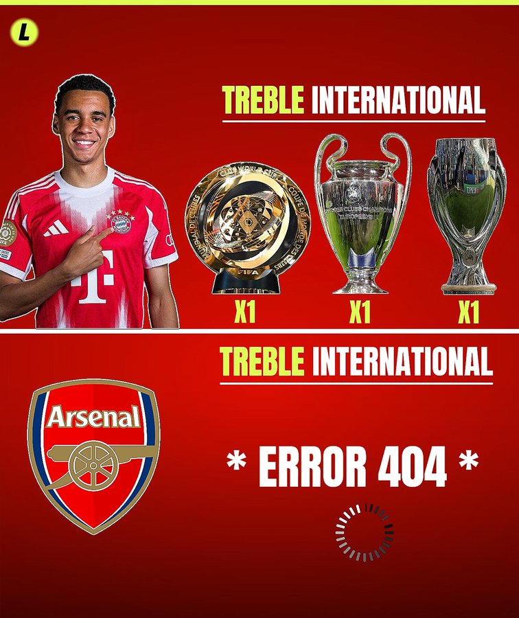 来自于外媒的一个恶搞对比我们不难发现,阿森纳在洲际赛场的奖杯数量,甚至还不及出道仅有5年的德国天才球员穆夏拉。可是阿森纳压根就没有欧冠或世俱杯等奖杯的获得,而穆夏拉却已在2020年随同拜仁拿到了这些荣誉。