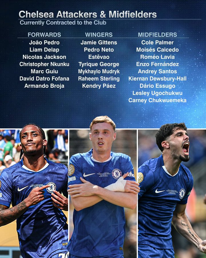 当然了,如此情形也意味着,如今的这支切尔西,在中前场的球员储备量再度超过了20人而向着25人的大关不断迫近。考虑到目前切尔西还有可能引进哈维-西蒙斯以及加纳乔的情形来看,预计到夏窗结束,切尔西的中前场人员储备甚至达到30人都并非遥不可及!