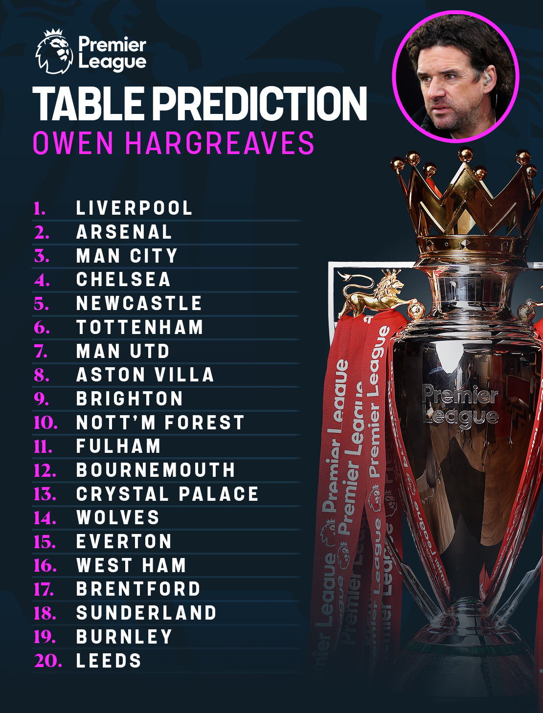 至于曼联,乔-科尔给出的预测是第9名,而哈格里夫斯给出的排名则是第7位。