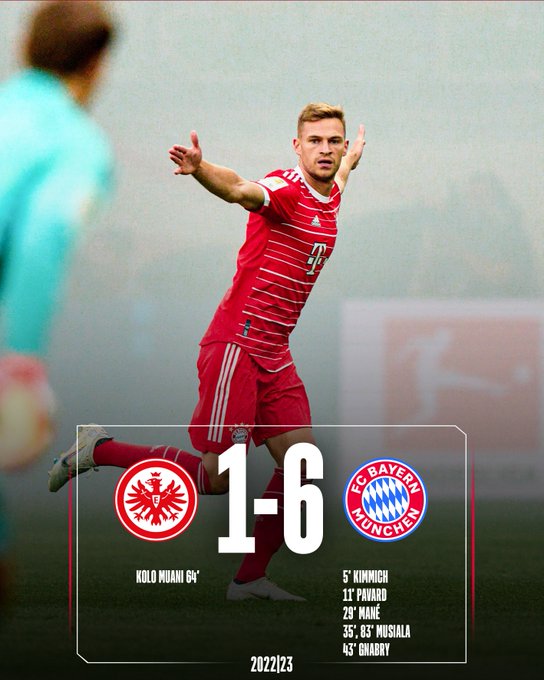 22/23赛季,拜仁在“烟雾缭绕”中,以6-1的巨大比分在客场击败了法兰克福。而在当时,拜仁仅仅在半场就打进了5球;