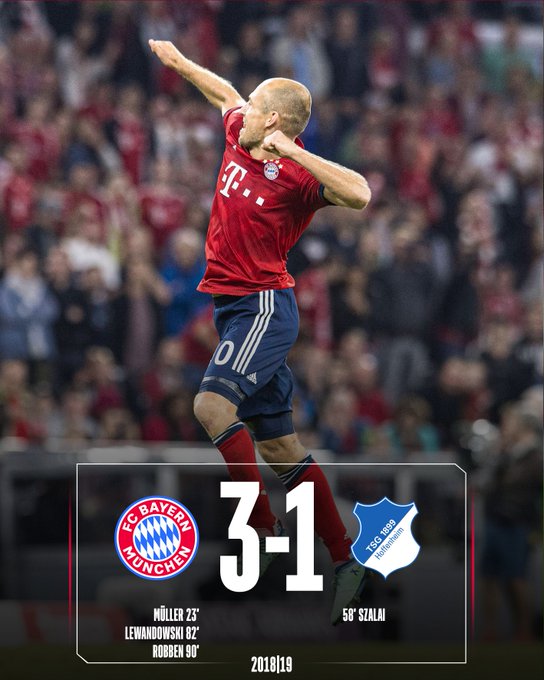 18/19赛季,作为时任新帅的科瓦奇开启了自己的拜仁之旅--在第一轮,凭借穆勒,莱万和罗本的进球,拜仁3-1取胜霍芬海姆拿下了三分;