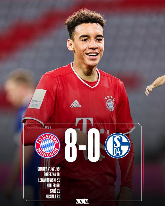 20/21赛季,在弗里克的率领下拿到19/20赛季三冠王荣誉的拜仁,回到联赛继续火力全开,格纳布里的帽子戏法帮助拜仁主场8-0大胜沙尔克04;