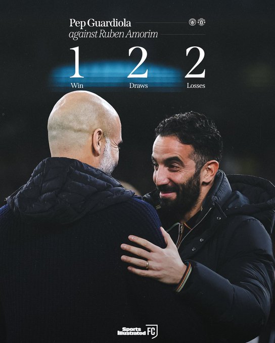 而同样值得关注的还有瓜帅同阿莫林的交锋记录--据统计,在瓜帅相遇过至少5次的78位主帅中,他对阵阿莫林的成绩是更差的、1胜2平2负。