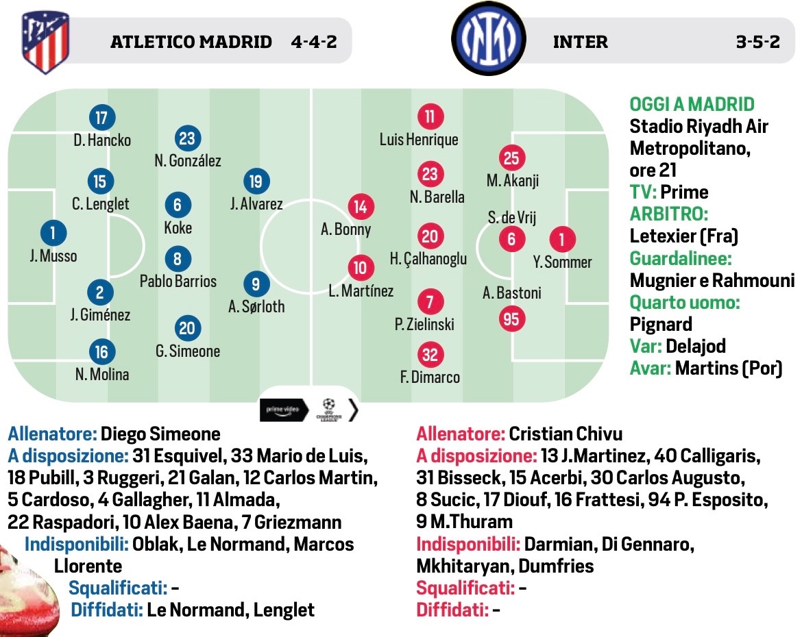 从赛前西蒙尼的采访中,其实不难看出本场的马竞将会在哪些方面进行针对性布防--国米进攻模式清晰且知道自己要什么,所以若想要获胜,就必须让比赛朝着可以伤害他们的方向发展。