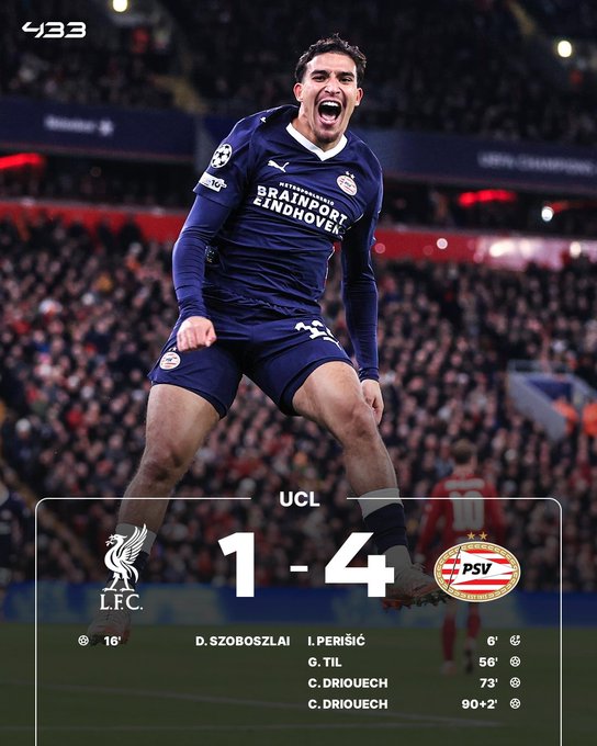 而依靠下半场的进球,埃因霍温也成功从安菲尔德带走了本场的胜利!