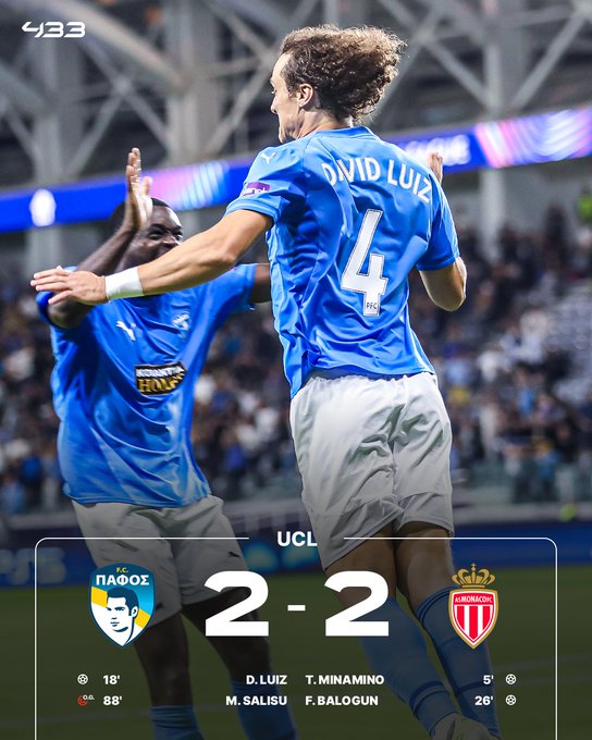 尽管客场作战的摩纳哥在第5分钟就由南野拓实取得了闪电进球,但大卫-路易斯在第18分钟的进球还是成功帮助主队迅速扳平了比分。而到了第26分钟,巴洛贡的进球尽管帮助摩纳哥再一次反超了比分,只不过,第88分钟萨利苏的自摆乌龙还是让摩纳哥未能客场取胜只能遗憾收获平局的结果。