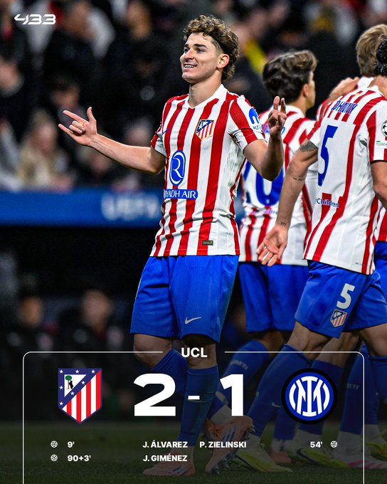 只是,第90+3分钟吉梅内斯的绝杀,更终让马竞主场击败国米从而取得了本场的更终胜利。