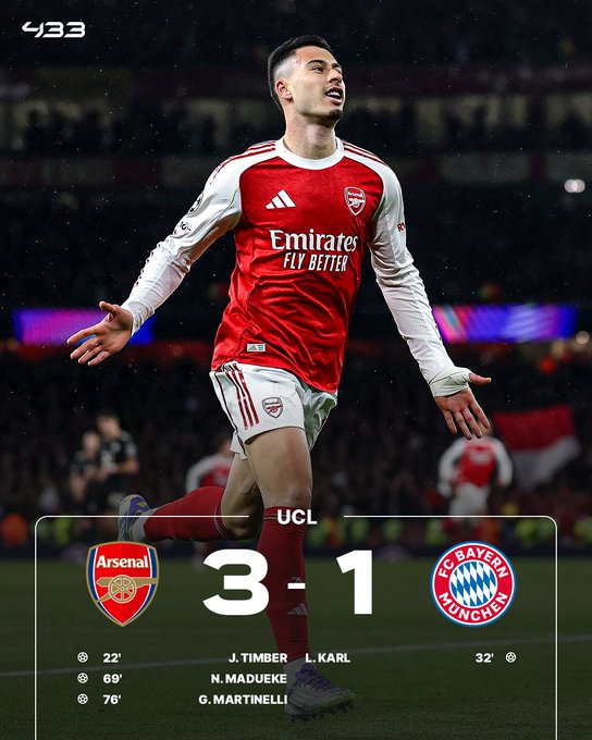 欧冠战报:枪手3-1拜仁,马竞2-1绝杀国米,巴黎5-3热刺