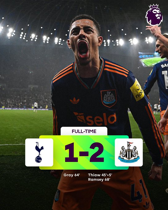 而到了下半场第64分钟,阿奇-格雷的进球,则帮助热刺扳平了比分;只不过,仅仅4分钟之后,拉姆塞的进球则让纽卡在本场再一次取得了领先。