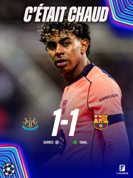 但,绝平竟然就真的发生在了补时阶段,甚至堪称读秒绝平!亚马尔的进球让巴萨更终在第90+6分钟绝平纽卡,更终让巴萨从客场带走了平局的结果!