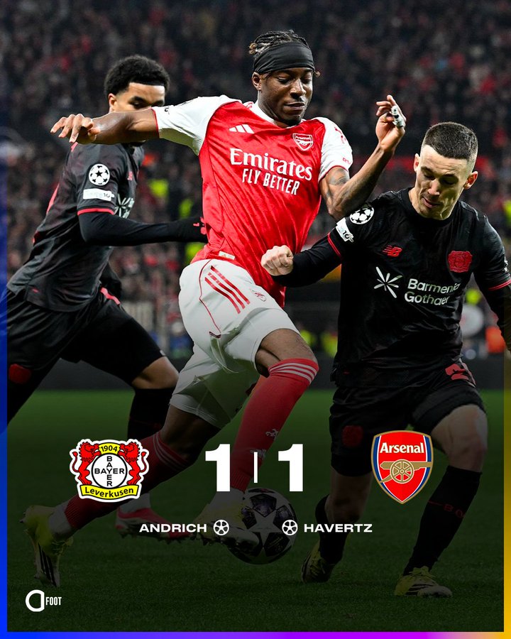 勒沃库森主场1-1打平阿森纳的比赛,则将悬念留到了第二回合;