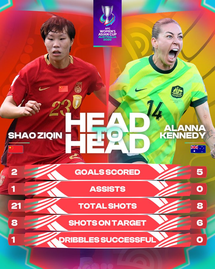 就在中国同澳大利亚的女足亚洲杯半决赛开打前,亚足联官方账号也对于两支球队在进攻线的核心球员进行了本届亚洲杯的数据对比。