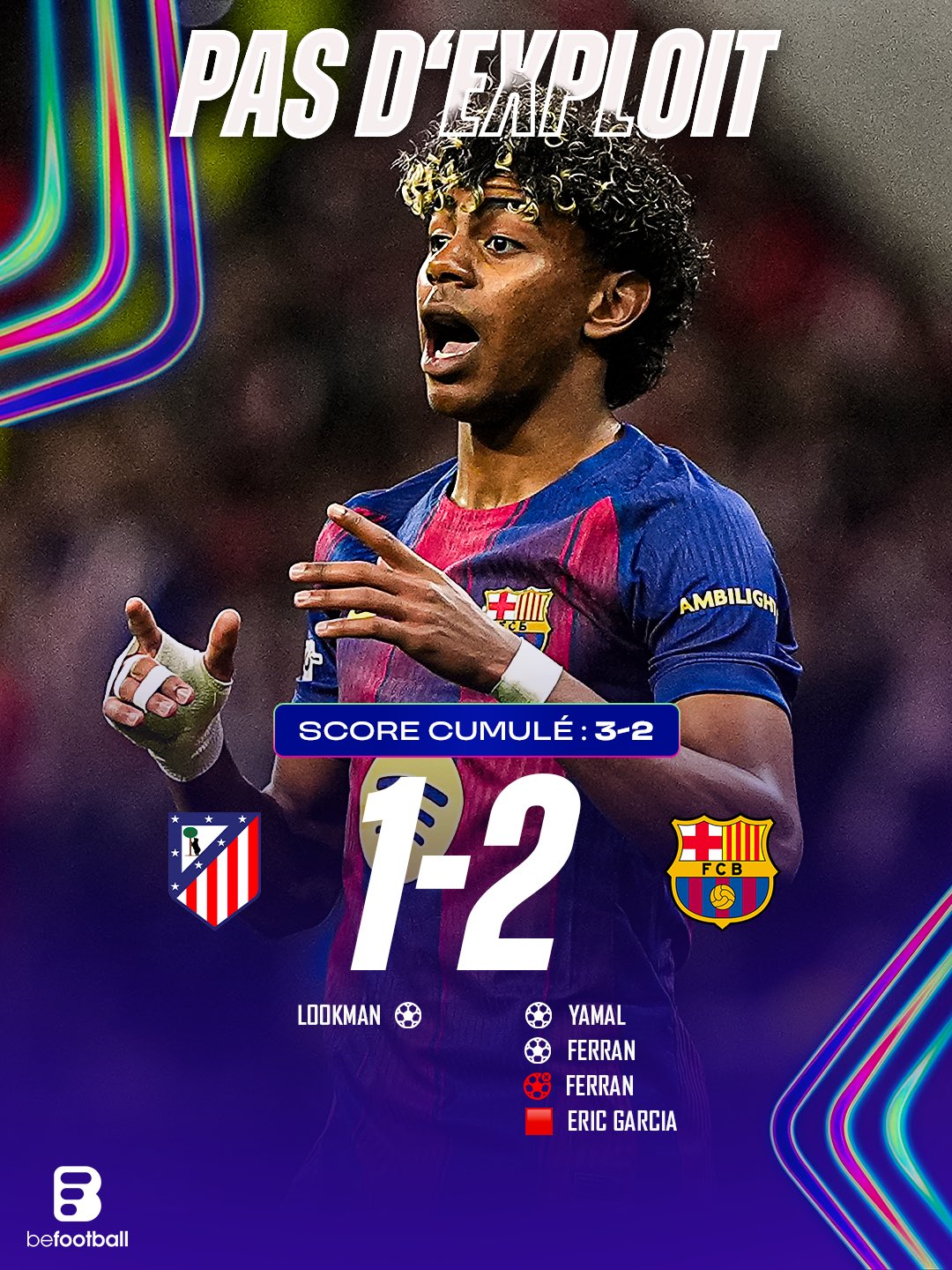 开场仅仅4分钟,进球便出现了!朗格莱回传失误后,亚马尔敏锐的把握住机会单刀破门,巴萨开场闪击取得了梦幻领先;
