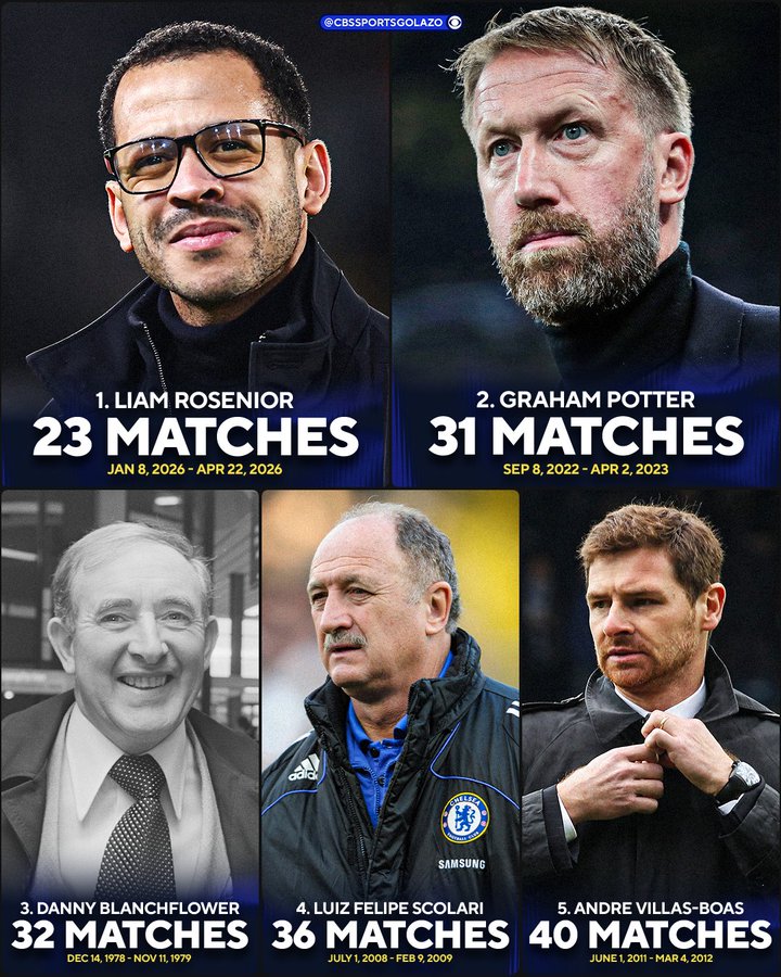除却时间段,罗塞尼尔很悲催的无疑也在于,他更是成为了切尔西队史执教场次更少就被解雇下课的正式主帅--不过23场比赛的他,甚至比波特的31场都还要少!
