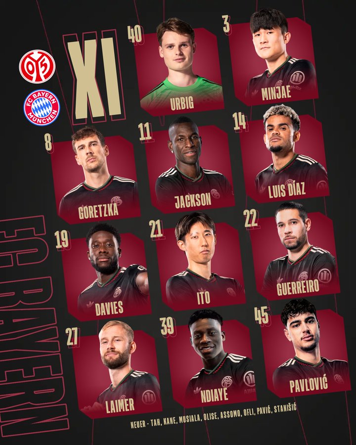 只不过,从第一发11人的情形来看,无疑还是暴露了拜仁替补席厚度太过单薄的事实--即将迎战巴黎的拜仁,却可是无人可用,而依旧要派出迪亚斯,帕夫洛维奇和莱默尔等主力球员。