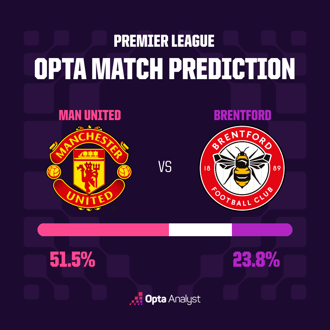 而在Opta的预测中,本场的红魔也的确是优势明显--红魔胜,51.5%;小蜜蜂胜,23.8%;双方平局,24.7%。